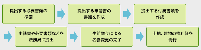 生前贈与による建物不動産の、名義変更は、法務局に申請書と必要書類を提出します。